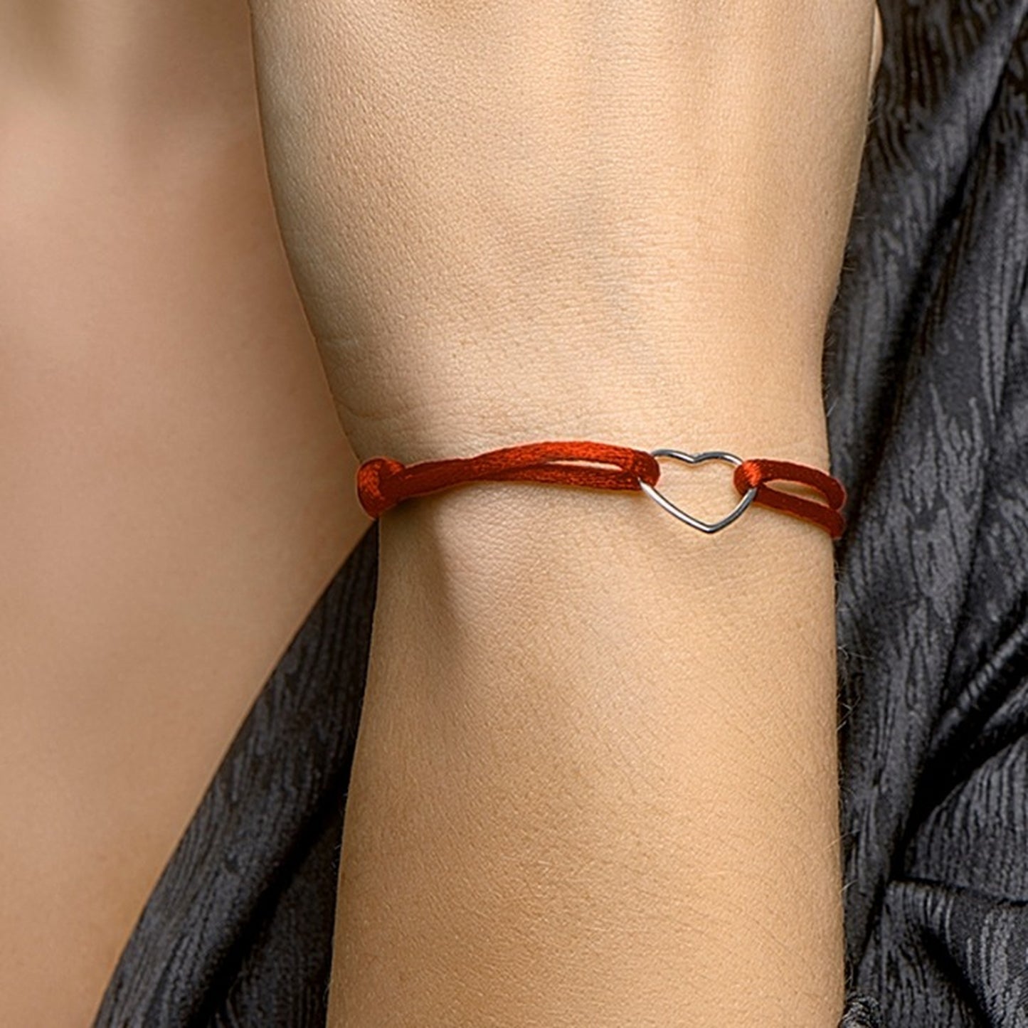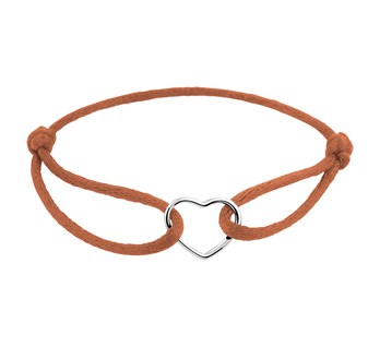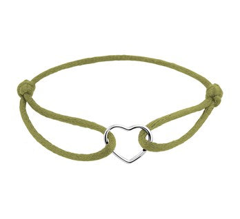 Gevlochten armband uitgevoerd met gerhodineerd 925 zilveren hartje. De armband heeft draaglengtes van 13 tot 26cm en het hartje heeft een afmeting van 12.5x15.5mm